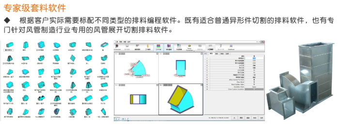 特別針對通風(fēng)管道行業(yè)專門用于切割2mm以下的薄、中碳鋼板、 不銹鋼板、鋁板、銅板、鍍鋅板、白鐵皮、合金板等多種板材材料,快速風(fēng)管激光切割機(jī),效果佳、無掛渣和毛刺;AutoCAD繪圖軟件直接用于繪制圖形,不需轉(zhuǎn)換,直接切割,并可進(jìn)行簡單的排料,工件共邊設(shè)置,購買本公司此款設(shè)備可享受免費(fèi)送貨上門、安裝調(diào)試及培訓(xùn)、包教包會!